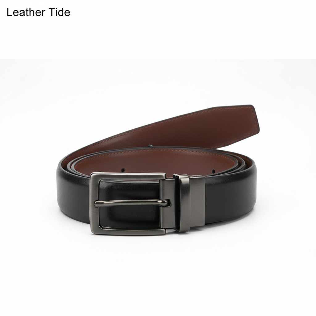 2-in-1 Double-Sided Cow Leather High Chrome Finish Belt - Perforated Black & Brown