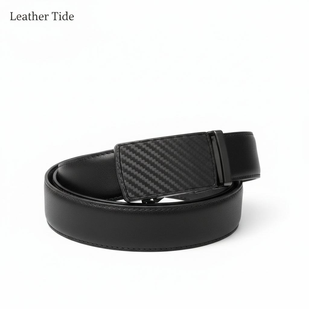 Full Grain 100% Genuine Leather Auto Lock Belt β Black Carbon Fiber Style Premium Waist Strap