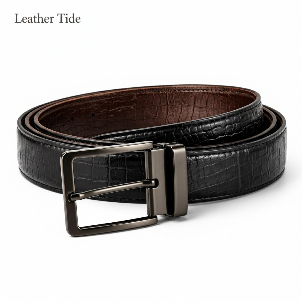 2-in-1 Double-Sided Cow Leather High Chrome Finish Belt β Crocodile Black & Brown