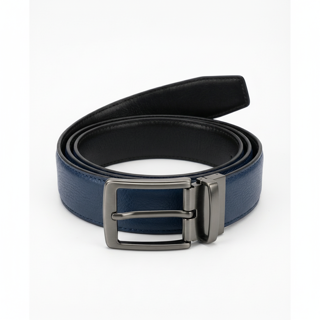 2-in-1 Reversible Genuine Cow Leather Belt β Premium Chrome Buckle (Black & Deep blue)
